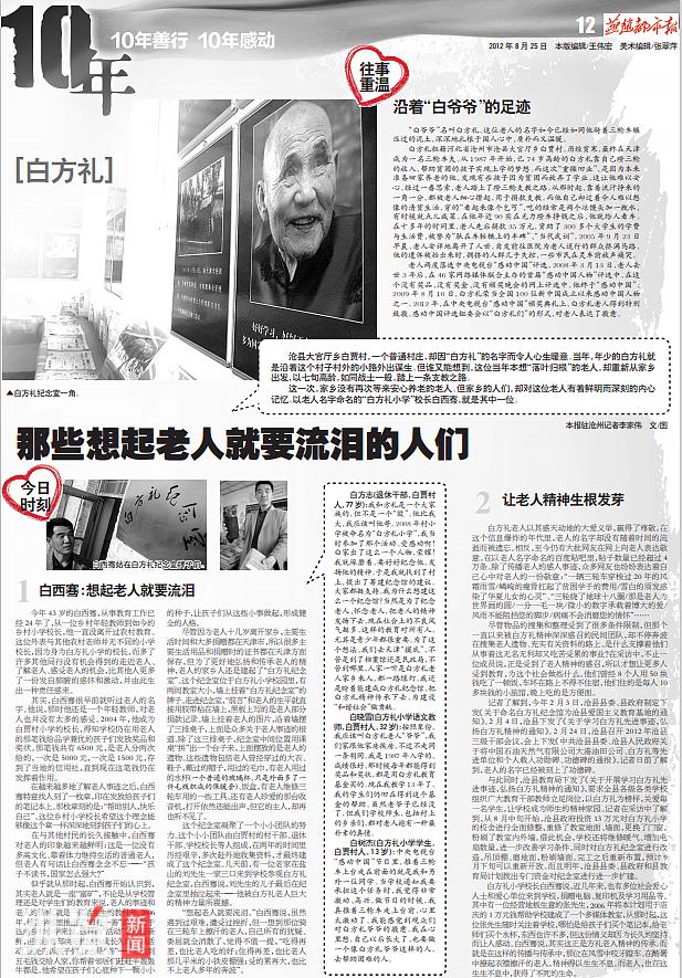 燕赵 · 都市报 2012 年 8 月 25 日刊发的白方礼相关报道。(来源 / 燕赵 · 都市报)