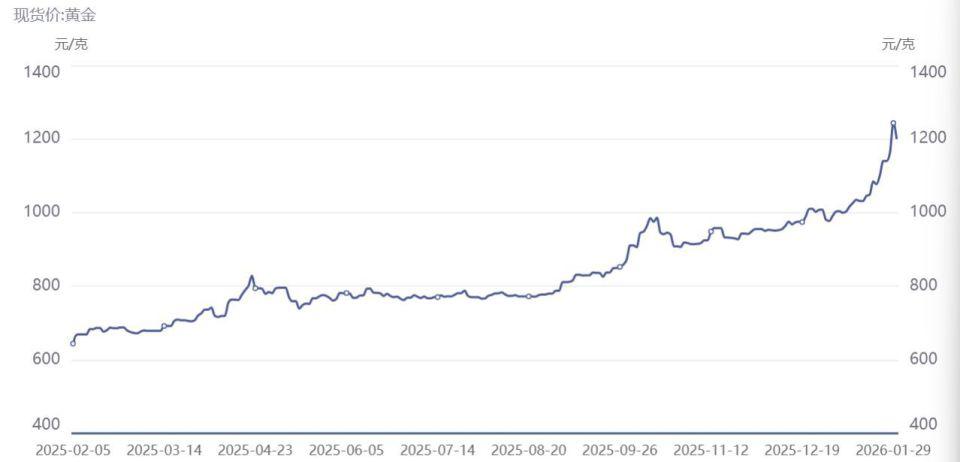 " 前天(1 月 29 日)金价(1 克)1200 多元,今天 1126.5 元。" 记者以消费者身份实地走访深圳水贝时,一位专门售卖金条的商家表示,目前金条价格是大盘价加 15 元工费,金条 1 克到手是 1141.5 元,相较前天的价格下跌超过 50 元,当被问及今日(1 月 31 日)价格是否还会变动时,该商家表示需等到下周一," 今天是周末,金价不会变动 "。