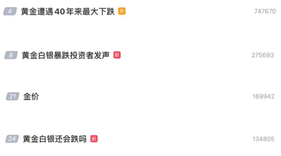从周五开始到周末,黄金白银 " 崩盘 " 成为社交平台热门话题。