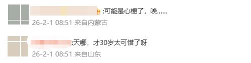 事件曝光后,引发网友热议,有网友感慨“世事无常,珍惜当下吧”,也有网友痛心留言“天哪,才 30 岁太可惜了呀”。