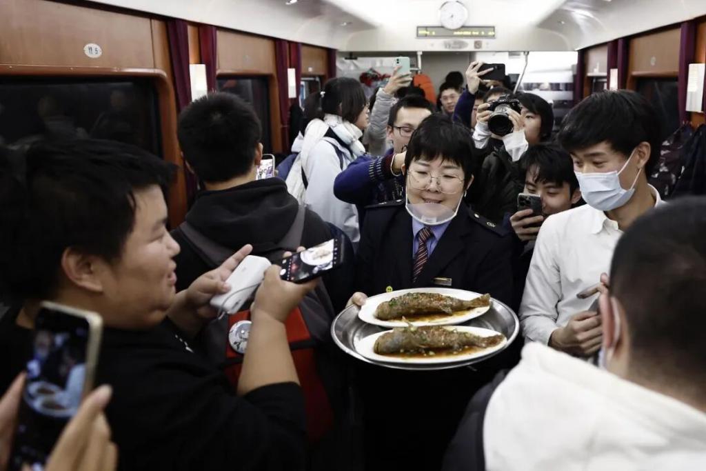 红烧鲈鱼是 Z99/100 次列车里的招牌菜式。列车停运前,不少人乘这趟车,指定要吃这条鱼。(图 / 视觉中国)