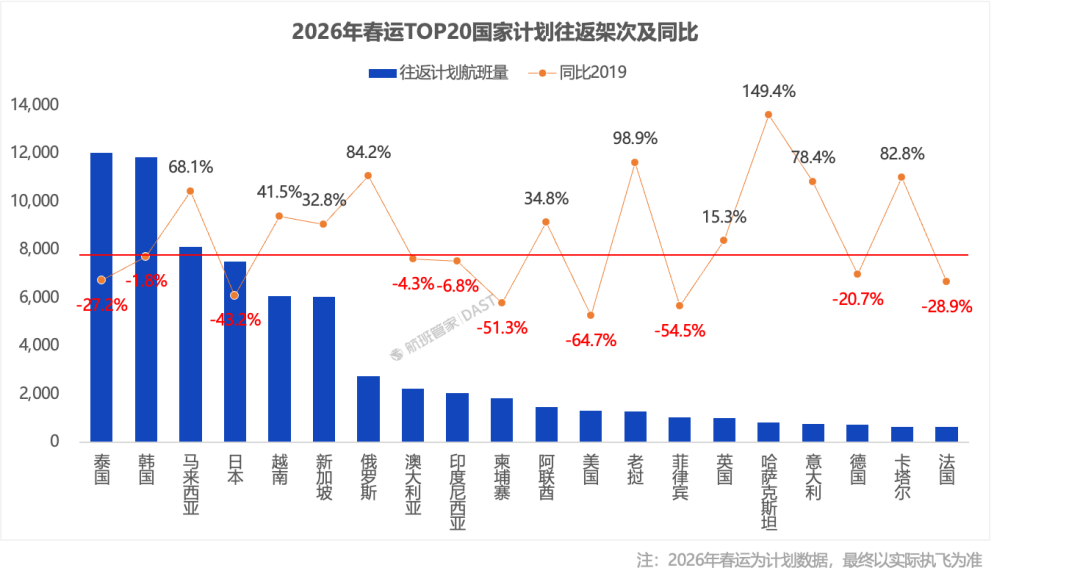 事实上,免签潮正在拓宽中国游客的目的地选择空间,也推动出境游市场出现了一定的结构性分化:一端是莫斯科、土耳其等“新兴免签目的地”带来的尝鲜型增长,另一端则是泰国、马来西亚等传统市场,在今年将接替日本,承接起春节出境游的主力盘。