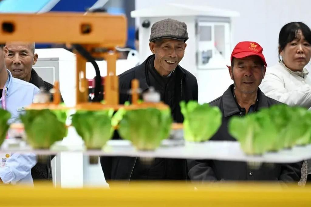 2025 年 10 月 25 日,参观者在杨凌农高会上参观 " 无人化植物工厂成套技术装备创制及应用 " 项目成果。新华社记者 李一博 摄