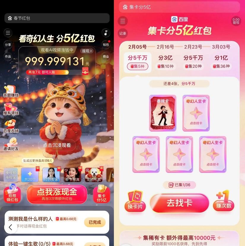 它并没有把所有筹码压在一次性拉新上,而是把红包拆进了多个使用场景里:用户需要通过内容参与、集卡、口令等方式逐步解锁奖励,周期长达 46 天,再叠加春晚这一高曝光节点,被引导反复回到文心助手。