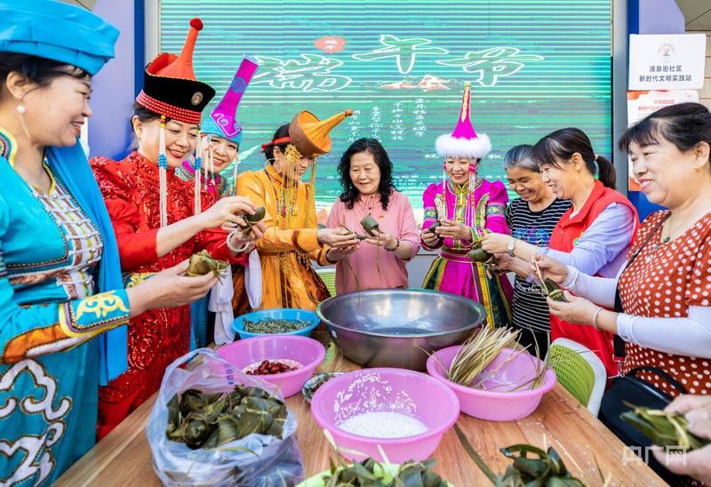 2025 年端午节,各民族居民聚集在清泉街社区里共同包粽子(央广网发 丁根厚 摄)