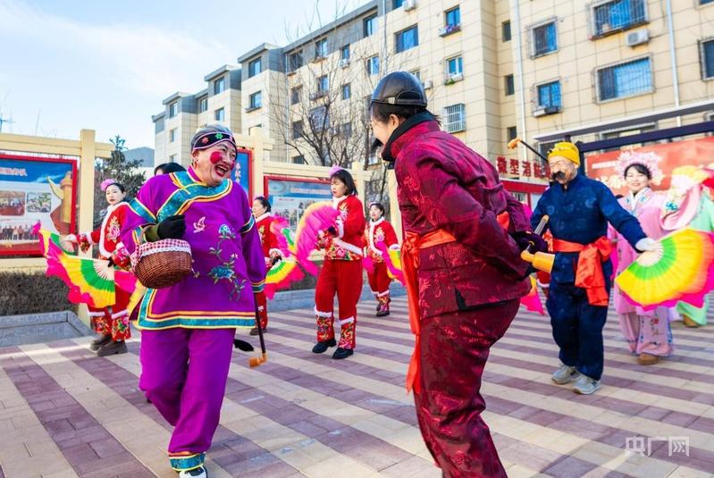 社区各族居民在小区广场上扭秧歌(央广网发 丁根厚 摄)