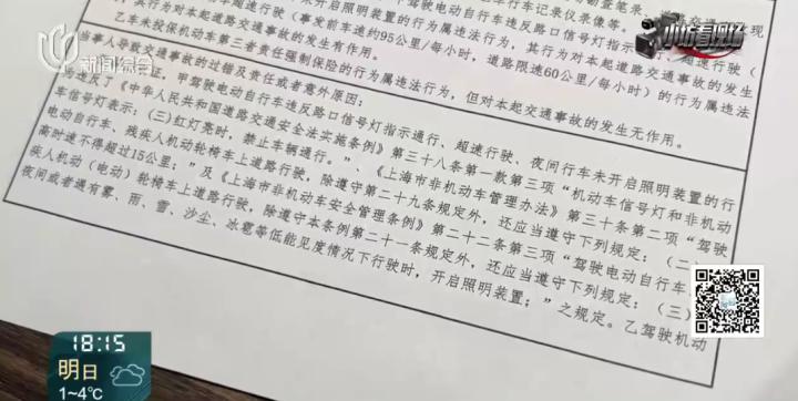 原告代理人隗先生表示:根据我国法院对于交通事故主张的相关标准来说,双方是机动车与非机动车、或者是机动车与行人的前提下,40% 是一个合理的赔偿比。