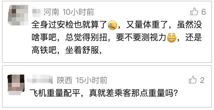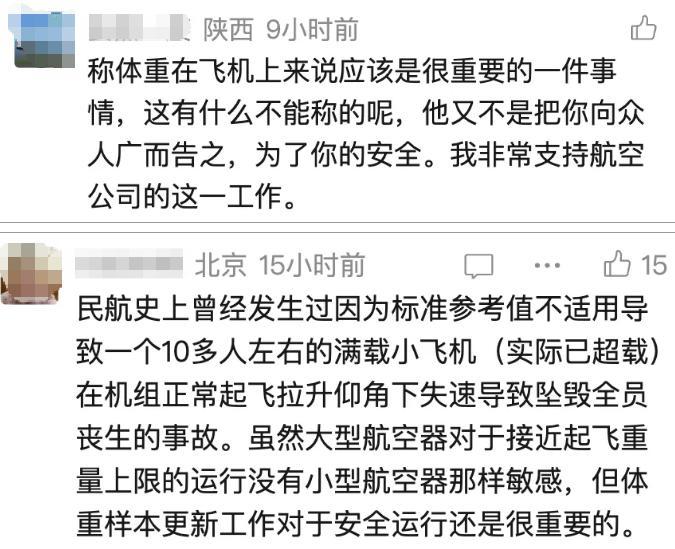 评论区中有网友表示,比较介意被他人看到自己的体重,能否选择不称重?对于称体重是否遵循自愿原则,国航客服表示需查询后答复,发帖网友则回复称," 机场人员会询问,每个人都是自愿称重的,还给了小礼物。"