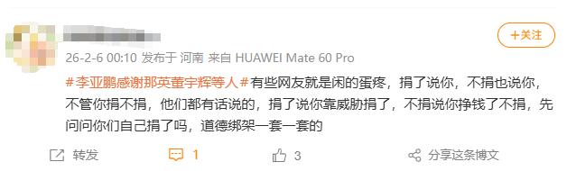 李亚鹏透露董宇辉捐款金额:比200万高很多
