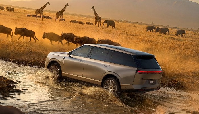 造型上,增程与纯电版本保持一致的设计基调:车头以简约为主,采用分体式灯组,上方为贯穿式视觉效果的日行灯带,下方纵置远近光灯组分布在前包围两侧,前脸中部预计配备主动式进气格栅,以兼顾能耗与散热需求。侧面轮廓更具“全尺寸”气场,A/B/C/D柱黑化形成悬浮式车顶效果,整车比例带有明显的路虎揽胜式神韵;同时配备隐藏式门把手、悬浮式外后视镜、电动侧踏板、后排隐私玻璃与全景天幕,并提供21英寸与22英寸轮圈可选。车身尺寸达到5265/1999/1800毫米,轴距3115毫米。