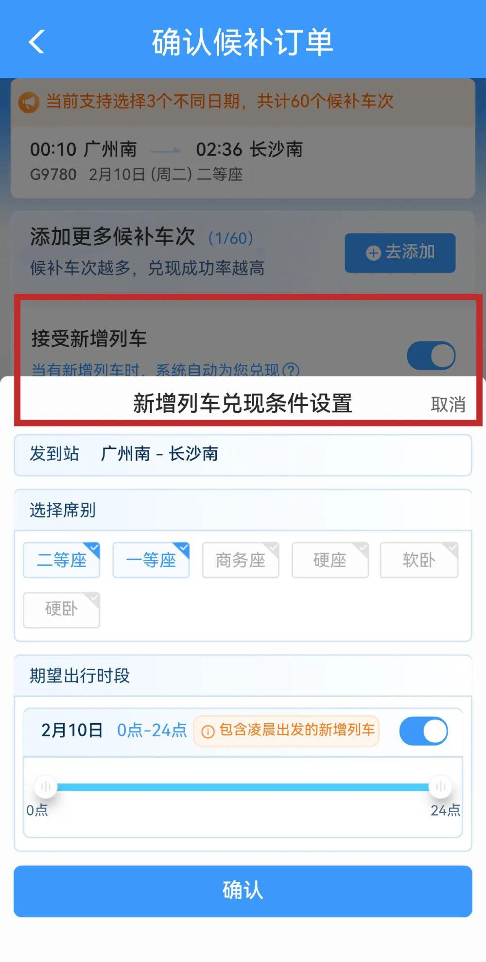 在 12306App 上,每个用户能同时提交 6 个候补订单,每个订单可选 3 个乘车日期,最多能凑 60 个 " 日期 + 车次 " 组合,还能勾选多个席别。