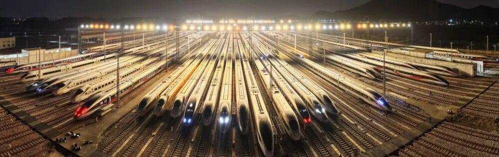 2 月 1 日,动车组列车停靠在广州动车段存车场。新华社记者 邓华 摄