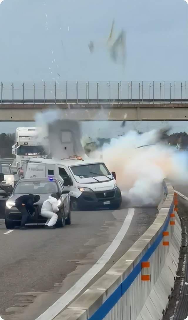 意大利高速上演惊天劫案,蒙面团伙炸毁运钞车,手持步枪对抗警察