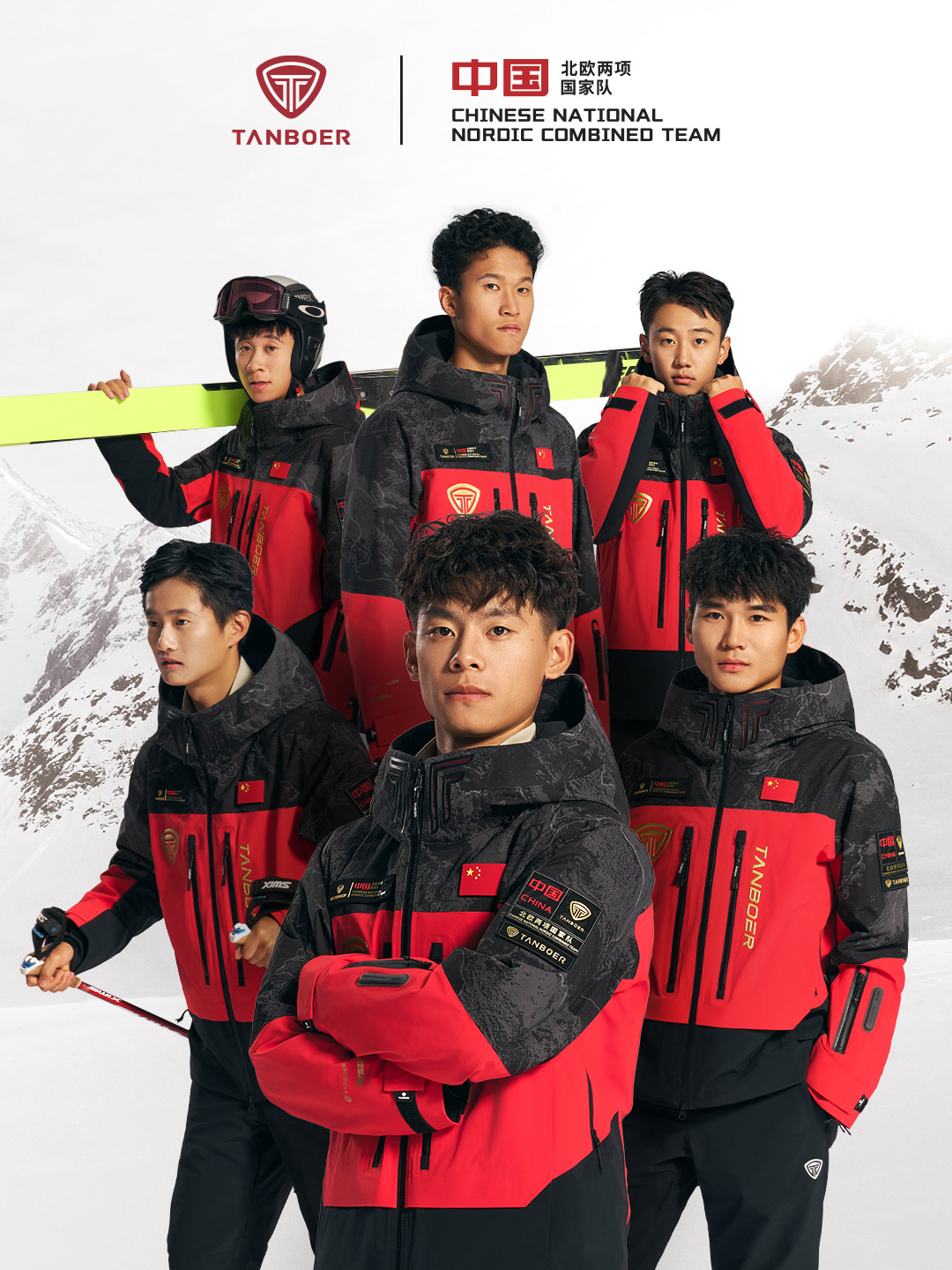 坦博尔是中国国家北欧两项队滑雪服饰赞助商,该品牌提供的冬奥滑雪服饰,选取赤霞山巅配色,印花图案以人类滑雪起源地阿勒泰为灵感,将层峦肌理与雪道脉络交织,版画工艺质感勾勒空间层次。