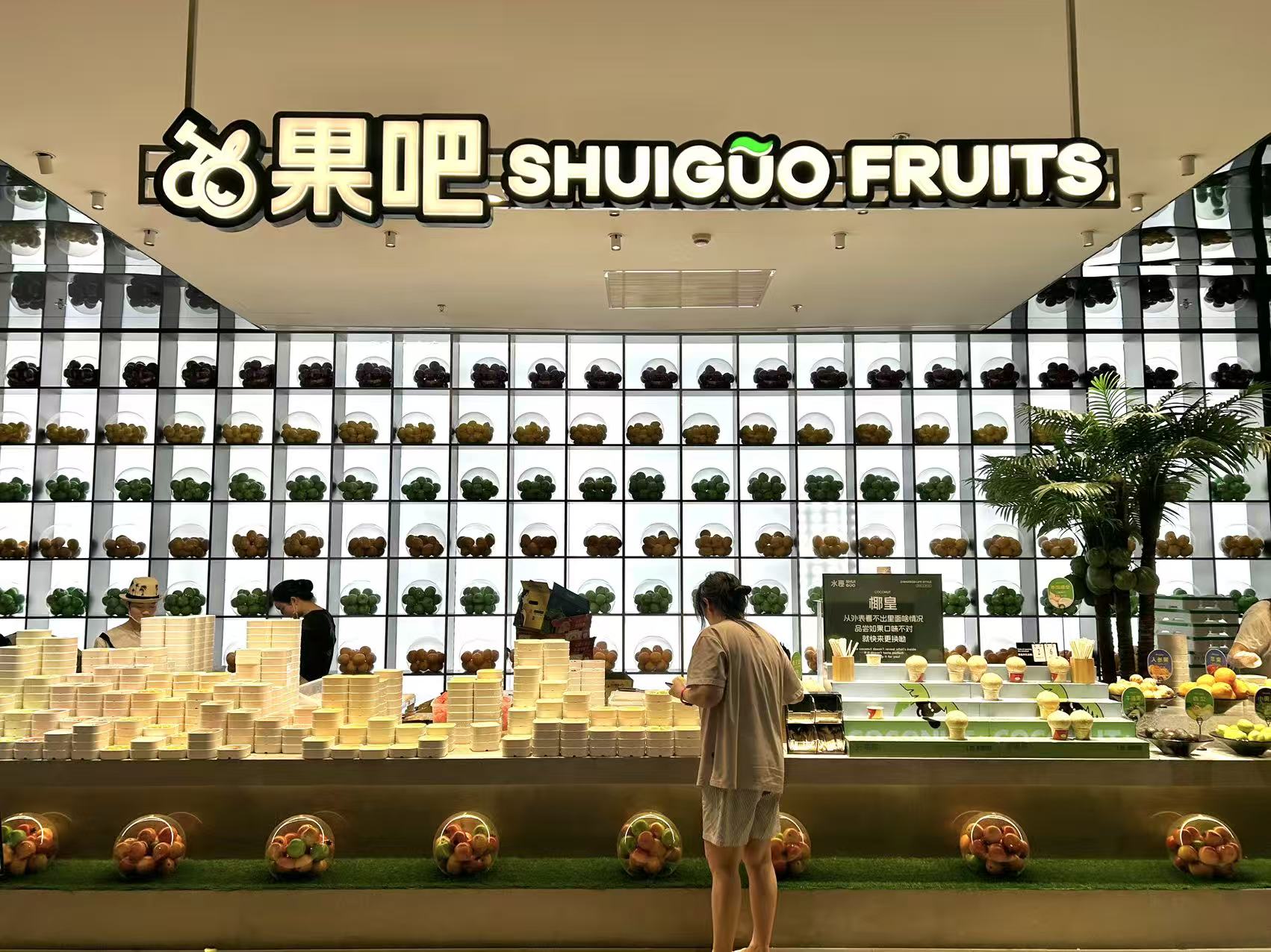 一进门的公共区域,有客人在沙发软垫上玩Steam游戏,在桌边打扑克、掼蛋、吃哈根达斯冰淇淋,左手边的饮品货架上有数十种咖啡、果汁、饮料、矿泉水免费供应,右手边的水果区,从车厘子到榴莲、草莓等各种应季热门水果现场切剥供人挑选。榴莲已经成为了这里的明星单品,“畅吃的榴莲在上架宣传的时候,小红书上居然有百万的曝光,很多客人都会冲着它来。”杜辉辉说。