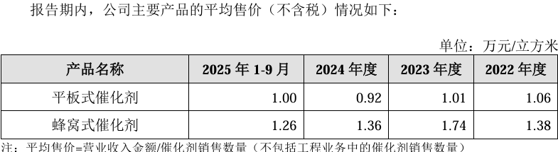 市场增量受限首先体现在产能利用率的下滑上。招股书显示,华电光大平板式催化剂产能利用率近年持续下滑,2022年为85.56%、2023年增至90.76%(峰值)、2024年为78.62%、2025年前三季度再度降至71.20%。