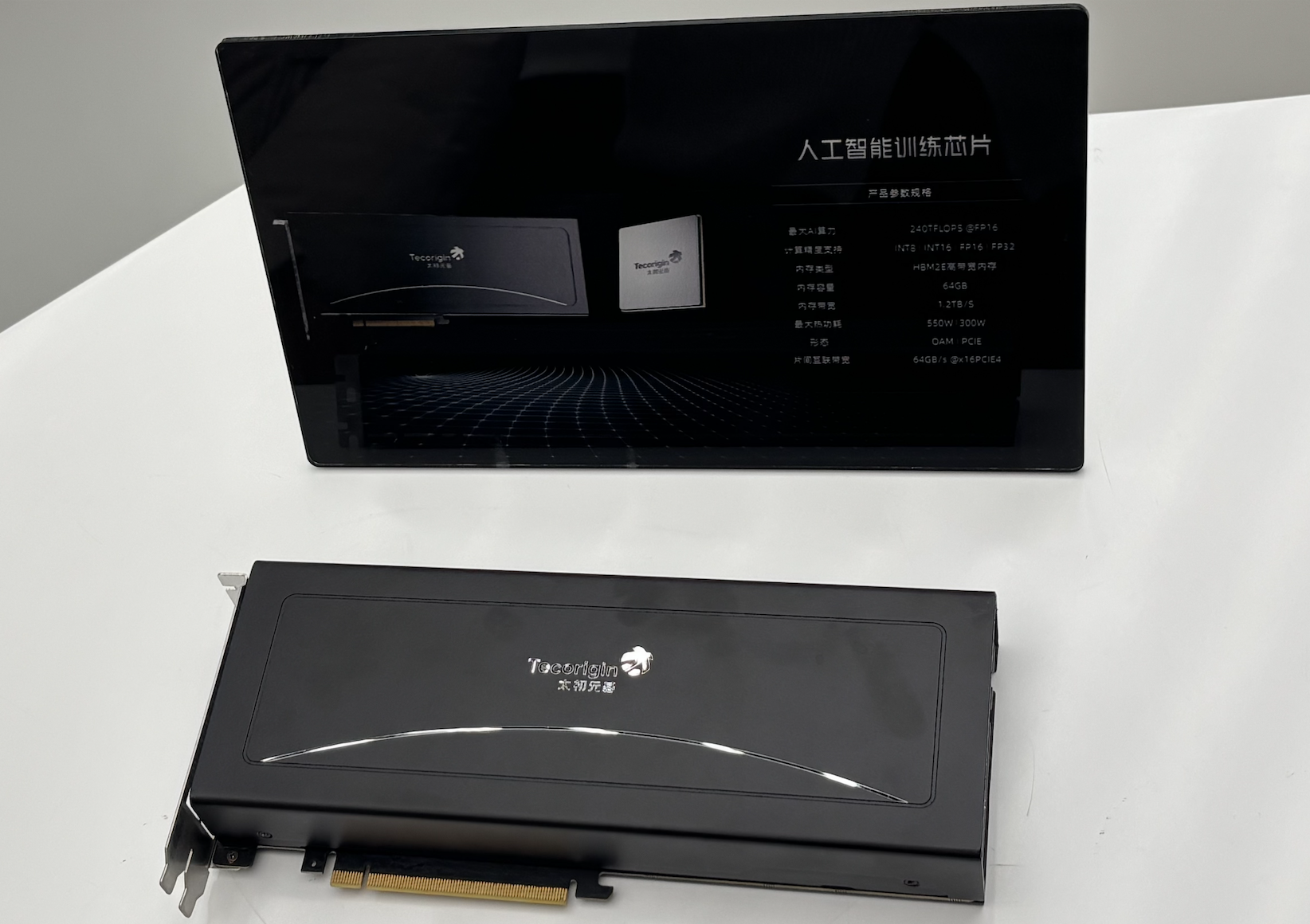 在这条新产线上诞生的服务器,搭载了国产拥有自主令集CPU龙芯3C600及自研AI加速卡,其中AI加速卡由国产AI芯片公司太初元碁(以下简称“太初”)研发。通过较为强大的并行计算能力,AI加速卡显著提升了AI模型的训练速度和推理效率。
