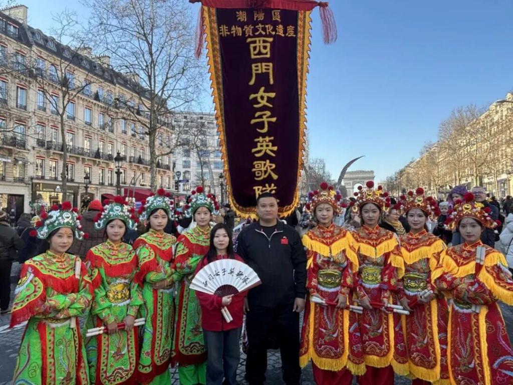 当时,她正带领 25 名队员在欧洲巡演,从德国哈瑙、法兰克福到法国里昂,最后在巴黎香榭丽舍大街," 中华战舞 " 与凯旋门历史性 " 同框 "。而家乡的分队,在正月初二同样有一场重要演出。