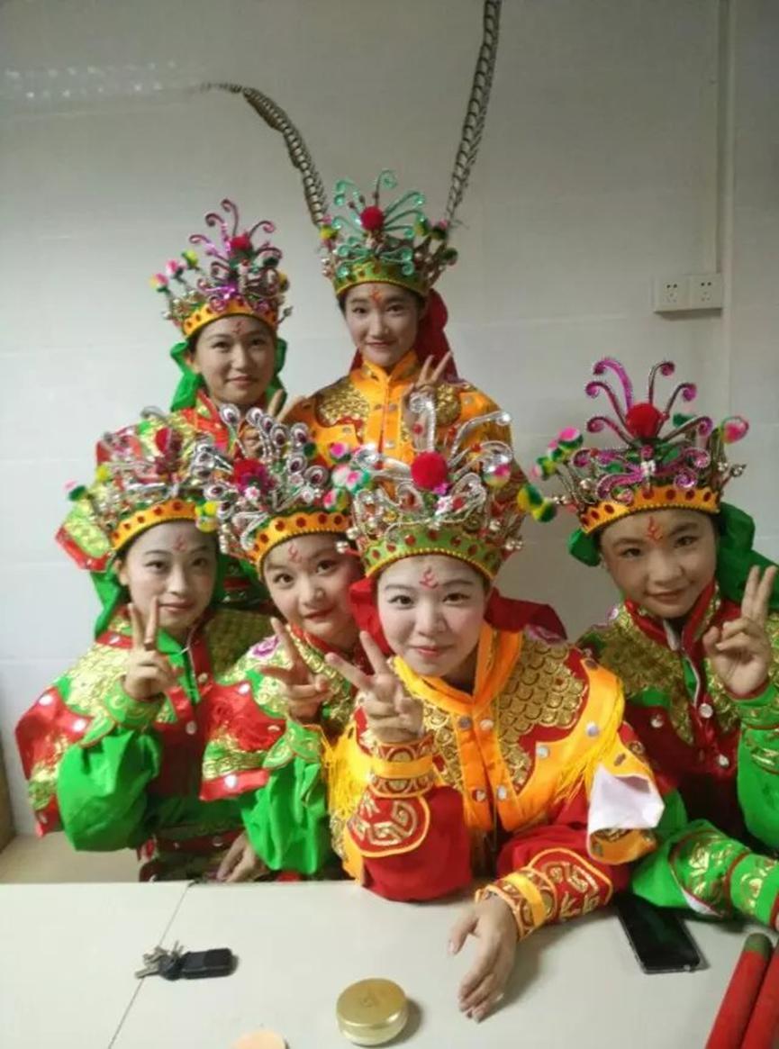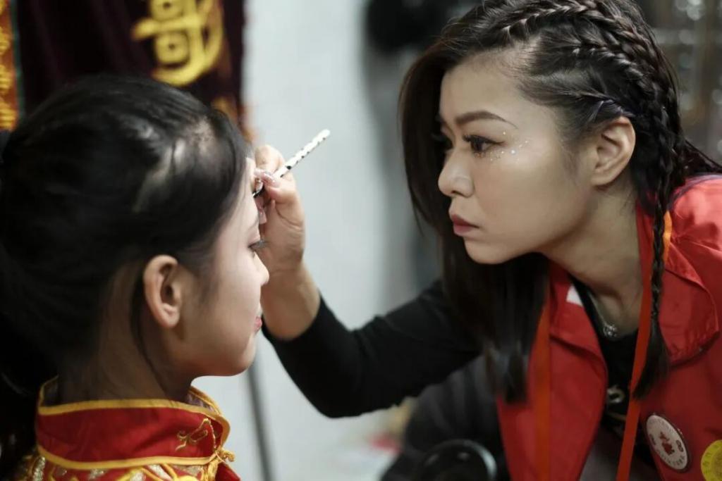 每次重大演出前,吴燕花都会亲手为队员们化妆,并在每个人额头绘上独特的 " 火 " 形标志。" 火 " 代表着西门女子英歌队的团魂,也寓意着队伍的未来红红火火。