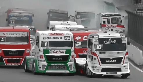 在欧洲,有卡车专属的竞速锦标赛,F1 咋开,这里就咋开(Formula Truck)。