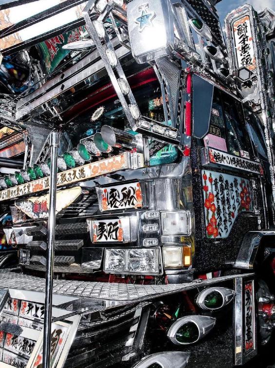 当然在本土化上,日本大卡车衍生出过" 暴走卡车文化 ",相比国内以泥土为 " 霸气护体 " 的百吨王,日本重卡司机喜欢用极度夸张和个性化的装饰来装扮自己的公路伙伴。