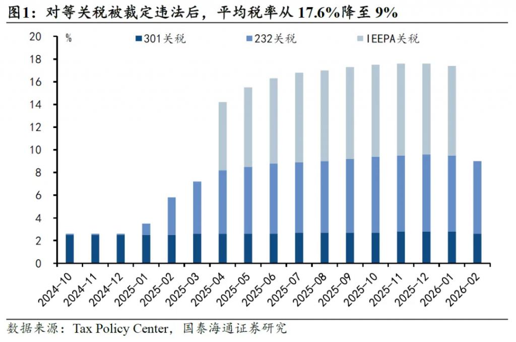 另一方面,全球各国都在盯着关税的新动态。IEEPA 失效后,特朗普政府无权上诉,只能执行,因此全球平均税率将从 17.6% 降至 9%。对于中国而言,美国对华关税将立即取消 20%(10% 的芬太尼关税 +10% 的对等关税)。而新的基础关税是 15%,一减一增,关税总体降低 5%。