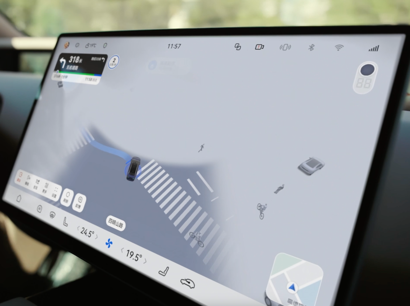 在乡村道路的尽头或狭窄的交叉口掉头,往往是大型车辆驾驶者的经常遇到的难题。为此,本轮OTA升级可以支持车辆完成三点式(K-Turn)掉头。当路口狭窄,系统判断一次转向无法完成掉头时,车辆通过前进、倒车的连续动作腾挪空间完成转向,减少驾驶员反复操作带来的紧张和风险。