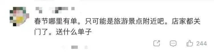 “春节哪里有单?只可能是旅游景点附近吧,店家都关门了,送什么单子。”