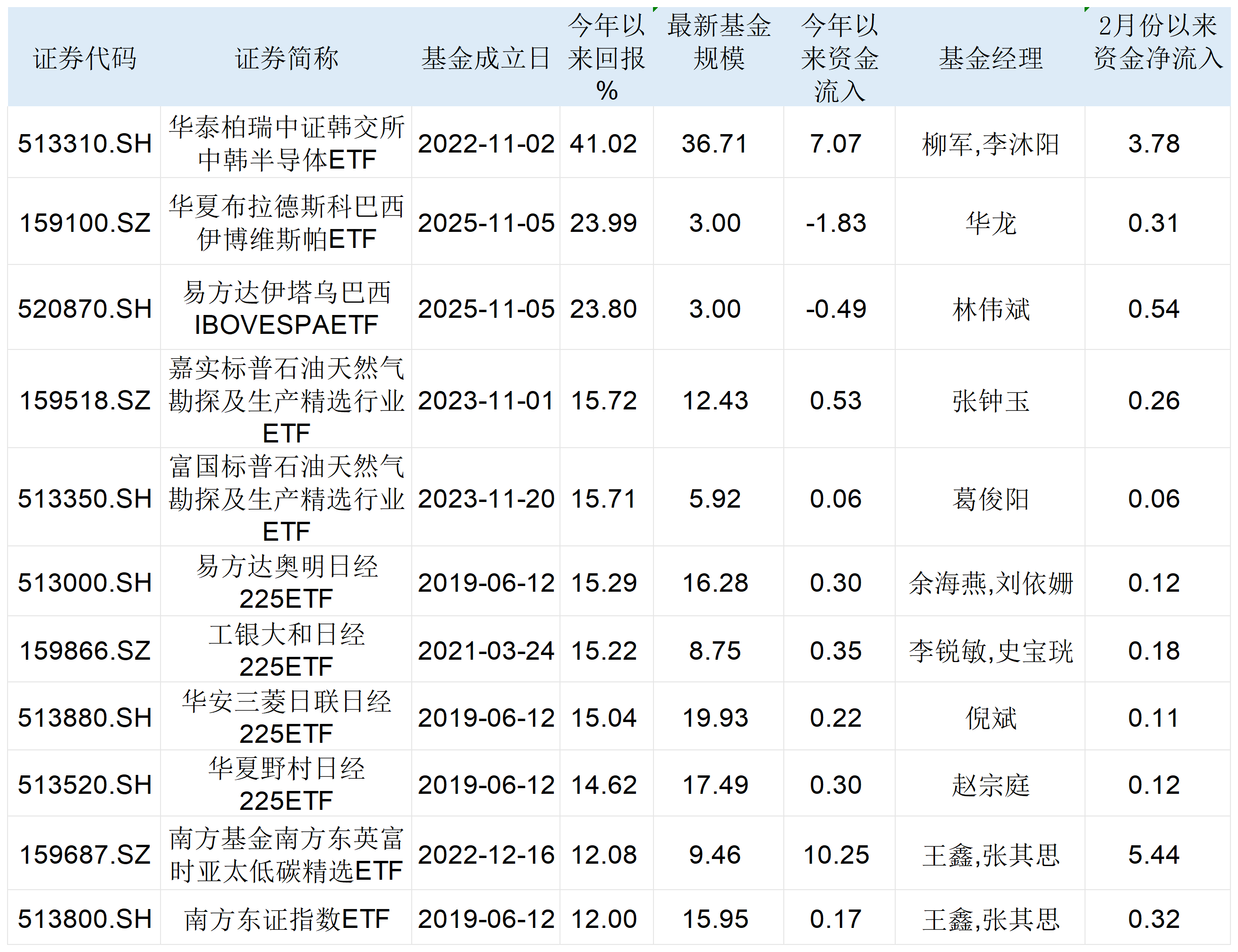 2月以来,受全球AI算力需求爆发驱动,这两家公司的股价分别上涨35.83%和20.90%,这也让中韩半导体ETF的净值创下历史新高。