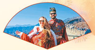 我是来自匈牙利的苏菲,我的男朋友马西奥来自巴西。今年春节,我们来到中国,大年初三,跟随旅游团前往北京慕田峪长城,景区内张灯结彩、喜气洋洋,这里正在举行 " 欢聚慕田峪全球过大年 " 春节主题活动。于是,我们就开启了一场充满中国年味的文化体验之旅。爬长城、穿汉服、品小吃、体验非遗民俗,在雄关之上感受中华文化的独特魅力。