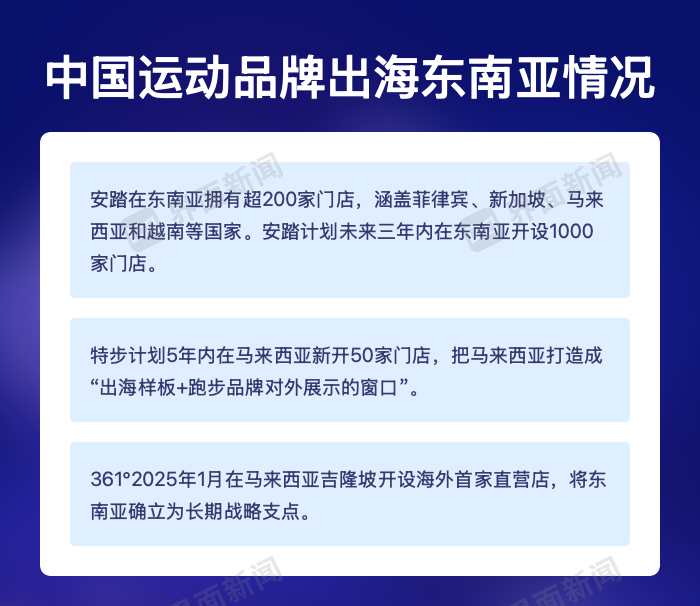 在国内市场寻求高增长变得更难,出海成为中国运动品牌寻找业绩增长的共同路径。在出海的浪潮中,各企业探索市场的模式不尽相同。2025年,安踏推动东南亚“千店计划”,特步计划在未来5年内在马来西亚新开50家店。