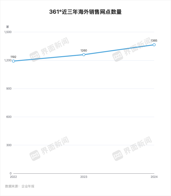 2025 年,361°国际业务持续稳定增长,主要动力来自于东南亚一带一路分销区域及欧洲、拉美市场的业务突破。截至2025年上半年,361°国际业务取得增长其海外业务已覆盖全球超过60个国家和地区,拥有1350多个销售网点。