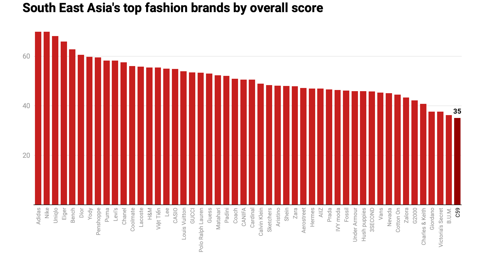 业务体量小与起步晚存在关系,耐克、阿迪达斯等欧美品牌早已进入东南亚分蛋糕,2003年阿迪达斯就在新加坡设立了区域总部,耐克更是在上世纪90年代已进入东南亚。此外,东南亚各国也有本土品牌,比如越南品牌Yody、菲律宾品牌Bench等,它们让后起之秀的市场空间遭遇了挤压。