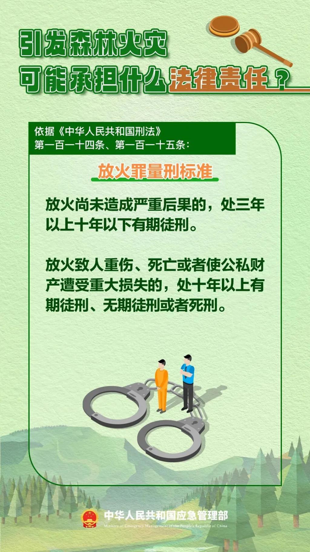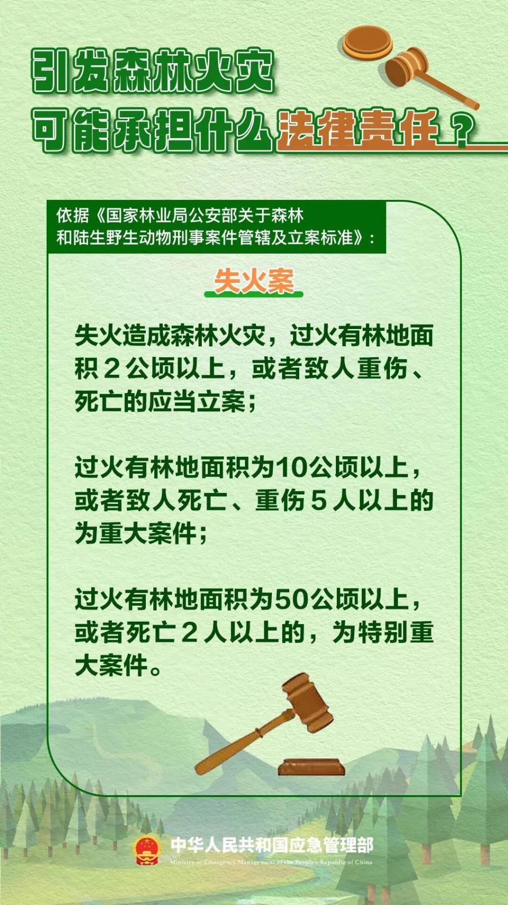 森林火灾突发性强、破坏性大,扑救较为困难,不仅能在短时间内烧毁大量林木,严重破坏森林生态系统和生物多样性,还会威胁人民群众生命财产安全,我国法律法规对涉火违法行为设定了明确且严厉的法律责任。
