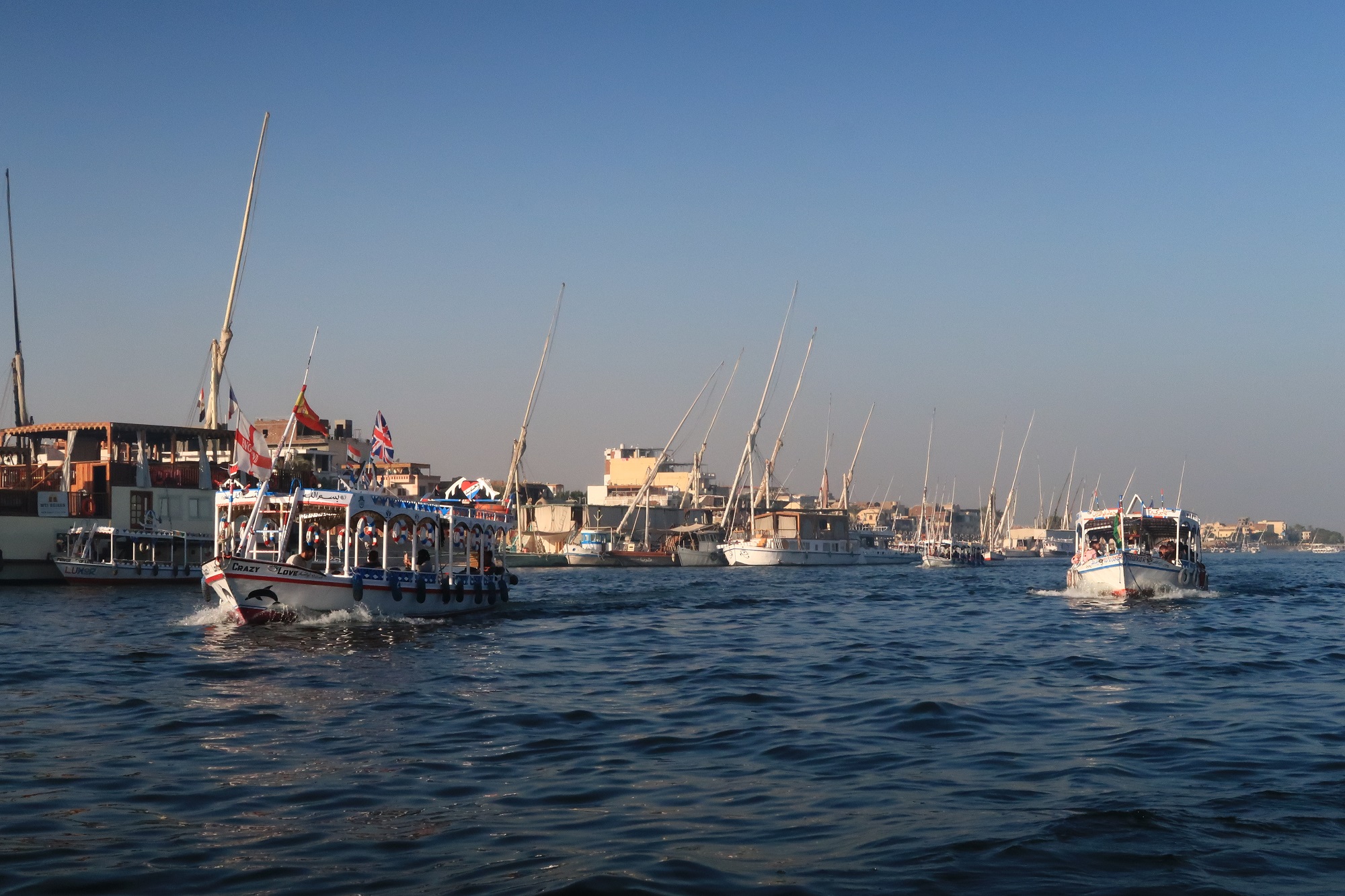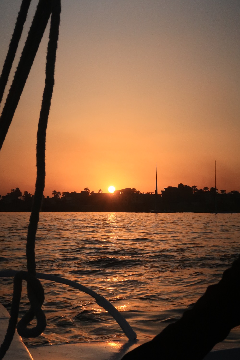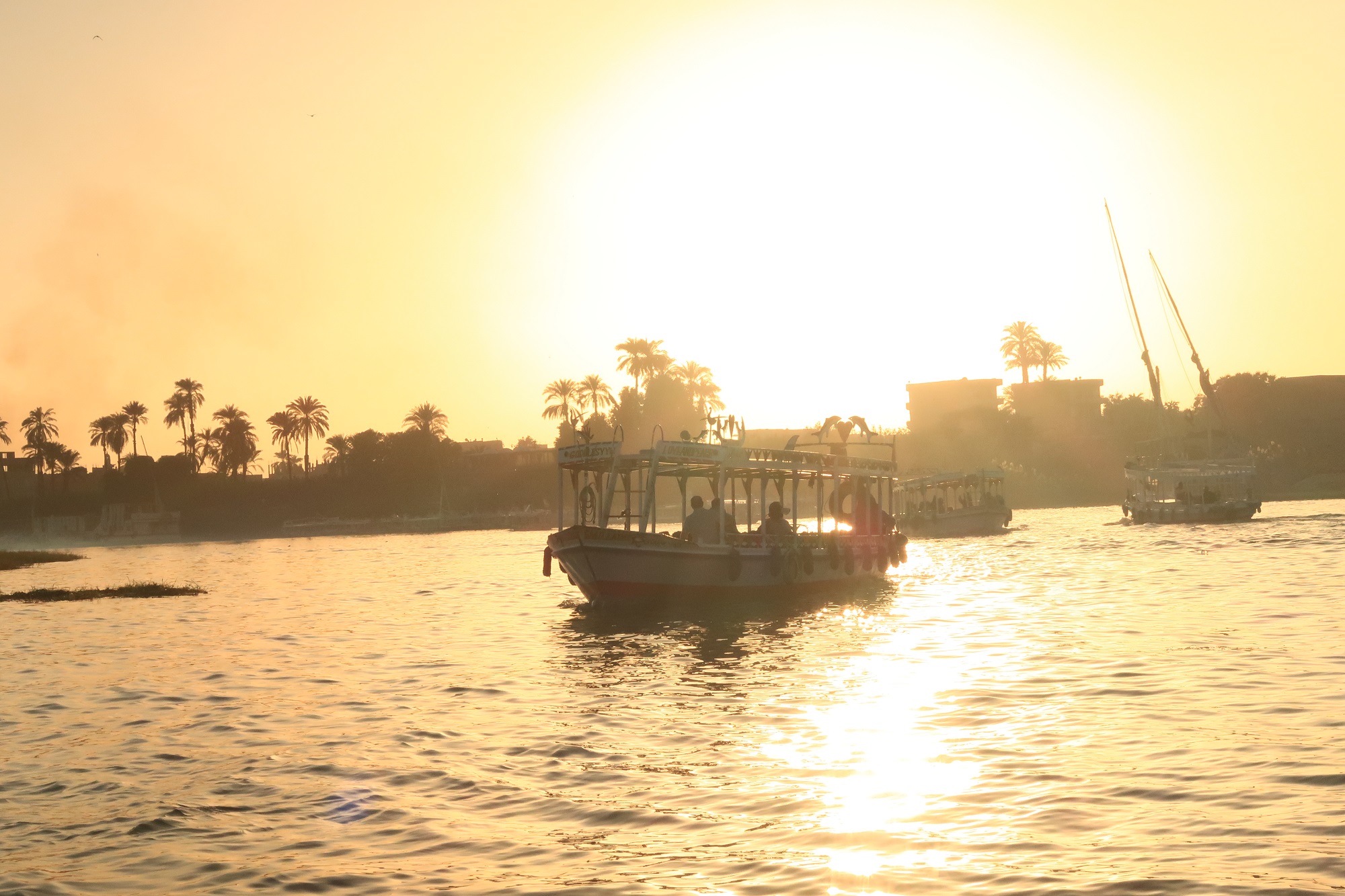 午后的阳光渐渐柔和,这般好光景,怎么能错过尼罗河上的落日呢。我与同行的伙伴跳上帆船,任由船只顺着水流悠然飘荡。往来的船只不少,人们隔着水面挥手问候,本地人喜欢在船上放着阿拉伯音乐,跟着节拍轻轻晃动身体。