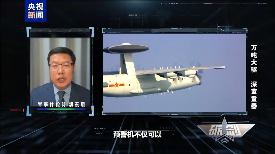 魏东旭:在海空兵力一体化作战的框架下,预警机不仅可以有效地探测空中目标,也可以在其他探测系统的协助下,更好地跟踪定位海上目标。