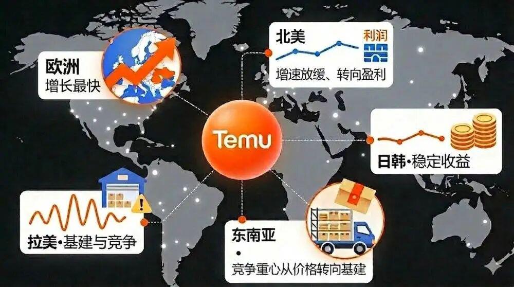 除欧洲和北美这两大关键市场之外,Temu 在日韩、拉美、东南亚也均有布局,但也各有挑战。