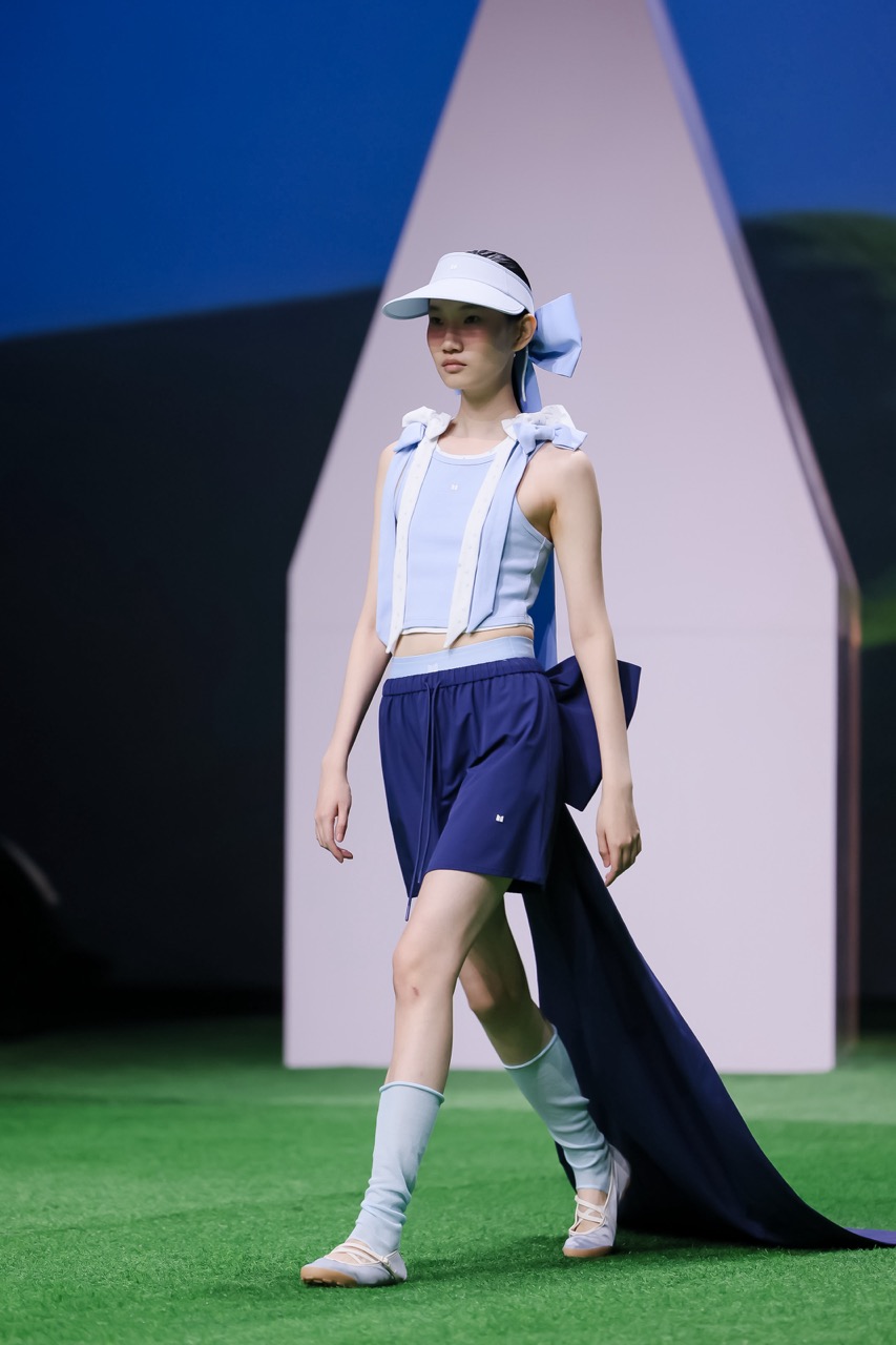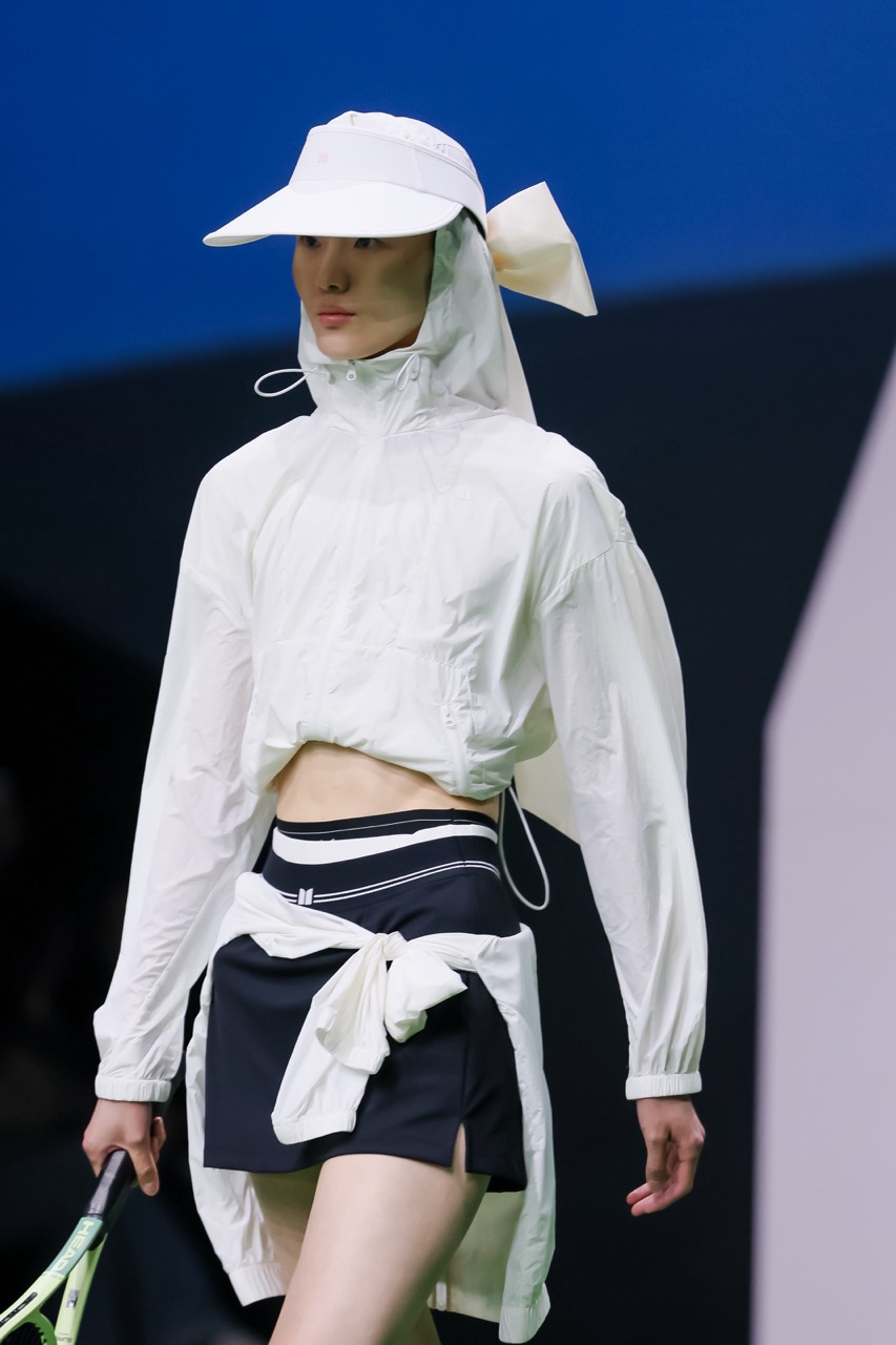 品牌延续原纱防晒科技与凉感面料,将UPF50+功能融入日常廓形之中,强调舒适与利落的平衡。设计上以蝴蝶结元素贯穿,通过运动内搭、leggings与防晒外套的组合,辅以猫跟鞋、球拍等细节,形成“Chic Sport”的轻盈表达。整体系列不再强调技术参数本身,而是将功能转化为更自然的穿着体验,使“防晒”成为一种更日常的存在方式。