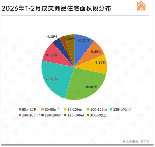2026 年 1 至 2 月,全国 120 平方米及以上户型在新房成交中的占比已达到 45.5%,这一占比较 2022 年的 40% 提升了 5.5 个百分点。