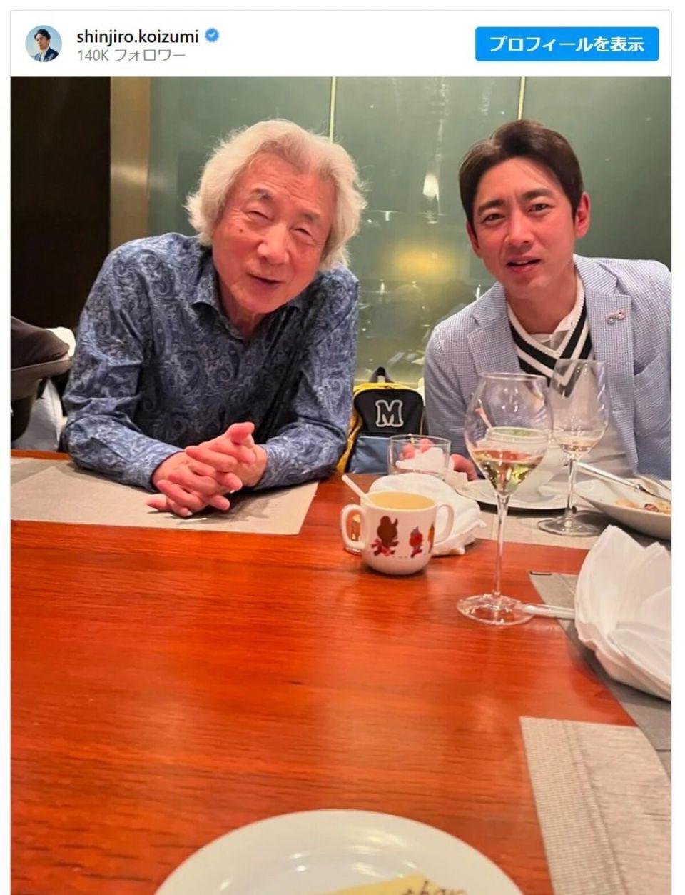 · 小泉在社交媒体上发布和父亲纯一郎(左)聚餐的照片。(小泉个人社交账号)