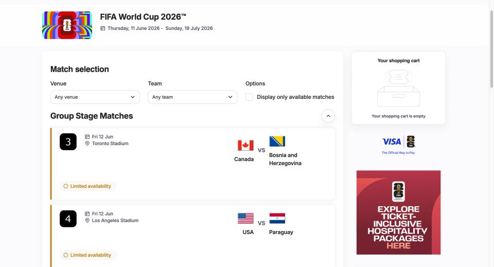 蓝鲸记者实测发现,目前 FIFA 官网已开启购票渠道,用户注册完账号后可在网站内选择相应的比赛。
