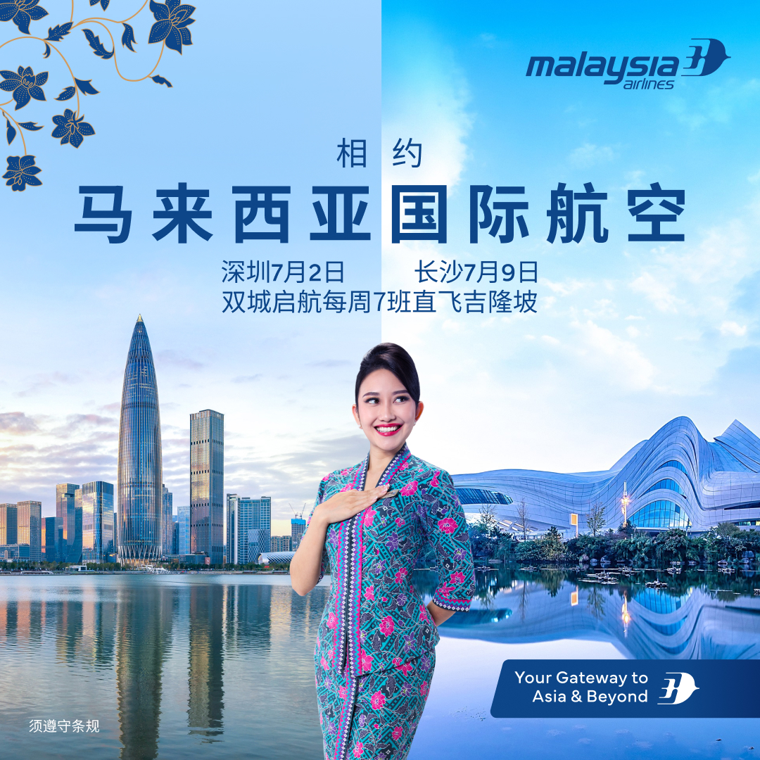 从区域布局来看,新航线填补了在华网络的空白。深圳作为中国重要的创新与贸易枢纽,将结合现有广州及香港航点,完善在粤港澳大湾区的网络布局,为大湾区旅客提供每日多达4班往返吉隆坡的航班选择。长沙则是中国中部重要的经济与文化中心,此次开航标志着马航进一步拓展至潜力广阔的华中地区市场。