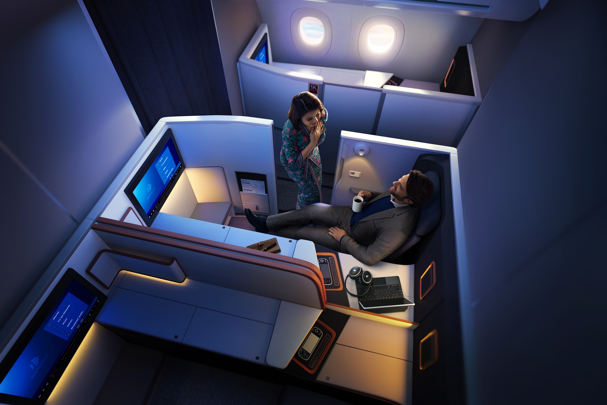 此外,A350机型配备商务套房(Business Suite),座椅自带按摩功能与腰部支撑,还设有梳妆镜、大容量储物空间及多类型充电接口,营造静谧的私人休憩空间。目前,该机型主要执飞吉隆坡往返伦敦、巴黎等长途航线。