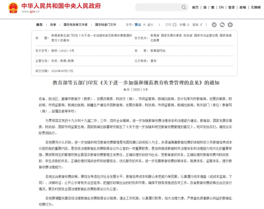 相关措施进一步将义务教育阶段的收费法定化。比如 2020 年,教育部等五部门印发《关于进一步加强和规范教育收费管理的意见》,明确学校不得擅自设立服务性收费和代收费项目,不得强制或者暗示学生及家长购买指定的教辅软件或资料。