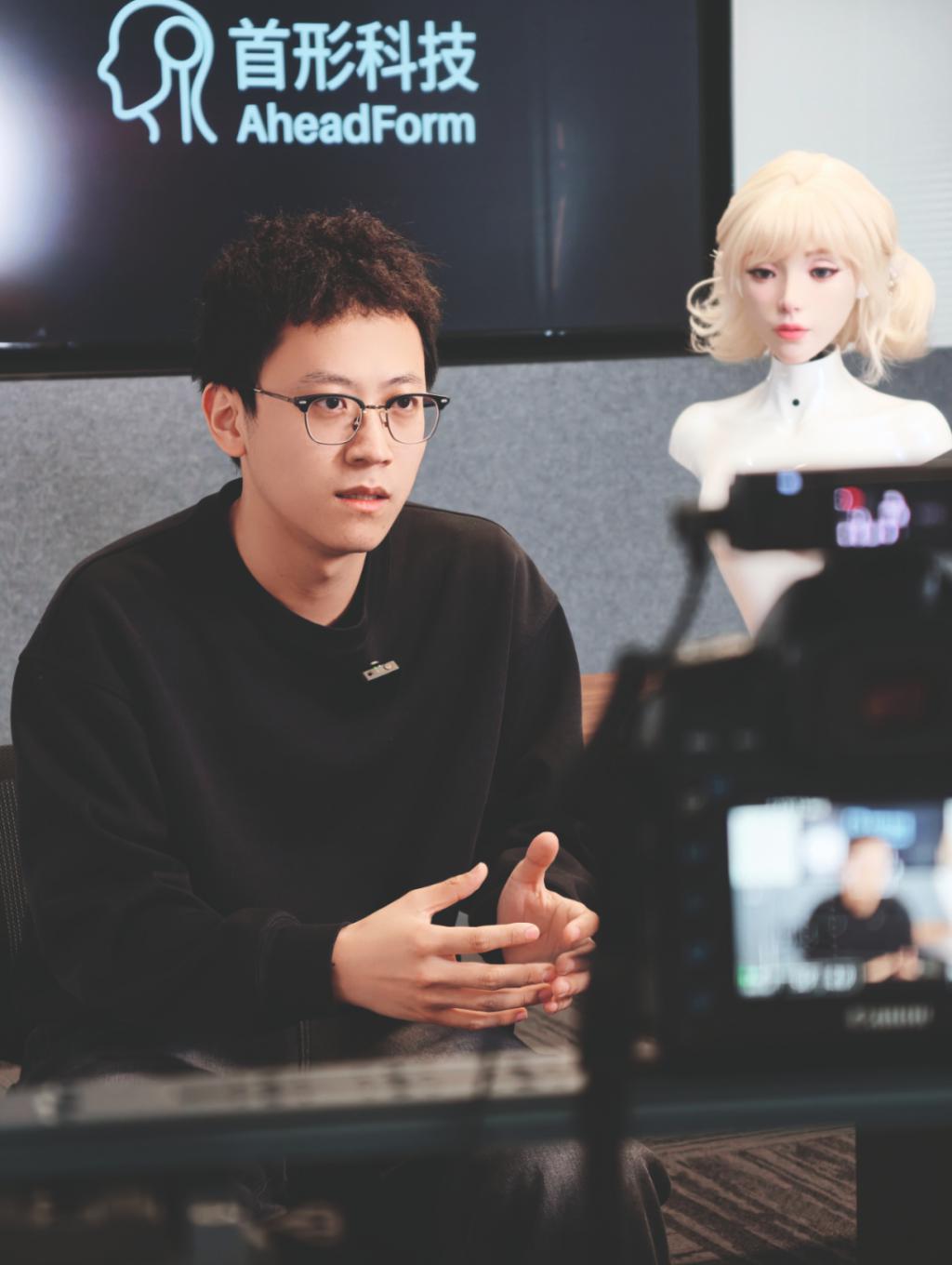 在视频发布的第二天,环球人物记者在北京亦庄锋创科技园见到了 U 航。他本名胡宇航,是新创企业首形科技创始人、首席执行官。接受采访时,胡宇航特意将视频中的机器人搬到了接受采访的会议室,还特意走到摄像机的取景器前,以观察机器人的镜头呈现效果。" 头稍微低一点,直视镜头、眼睛不动会让观众不舒服。嘴角再抬起来一点,上镜更好看。" 他一边说一边指挥技术人员进行调整。