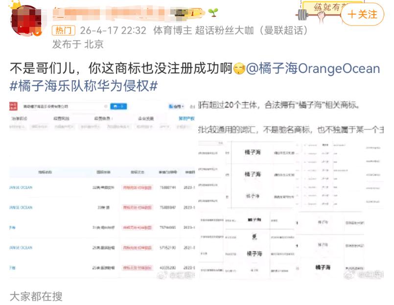 不过,有网友发帖称,橘子海乐队曾尝试注册 " 橘子海 " 商标,但均未成功。