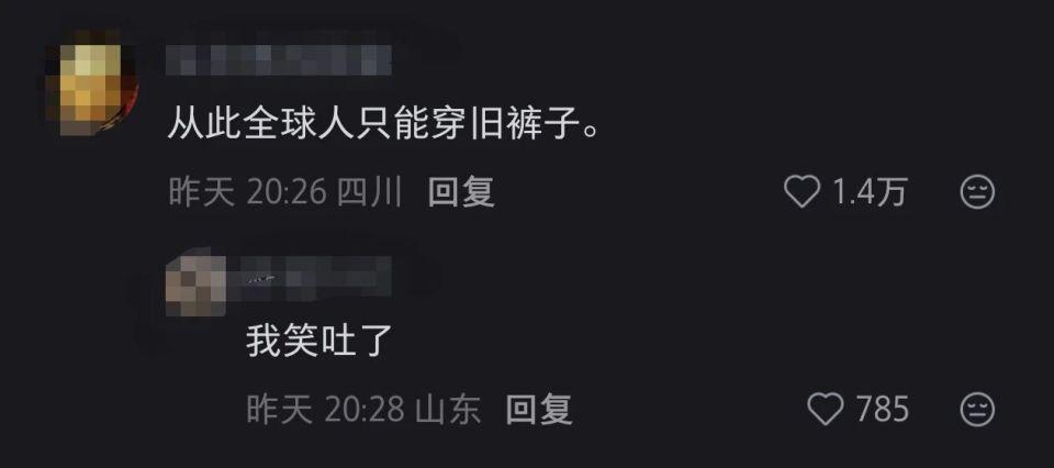 有网友称,从此全球人只能穿旧裤子;