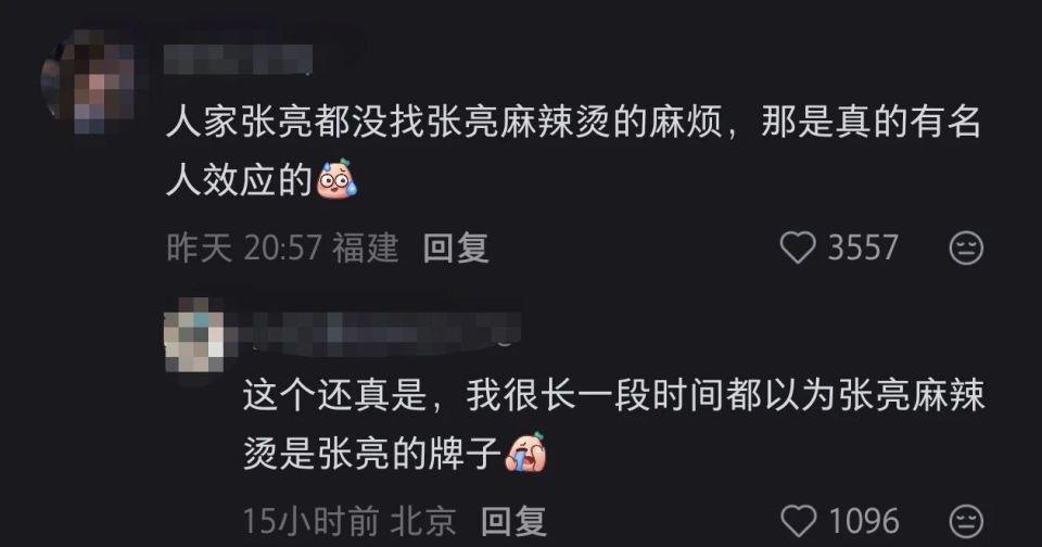 有网友认为,张亮(明星)都没有找张亮麻辣烫麻烦,那是真有名人效应的;