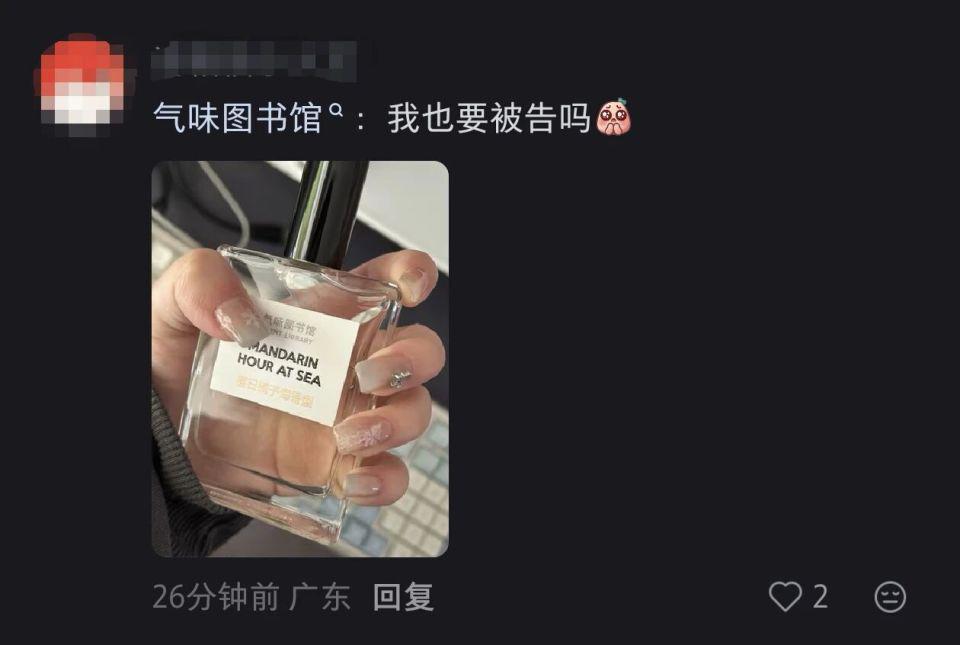 气味图书馆的一款 " 橘子海 " 香型香水也被网友晒出:" 我也要被告吗 "