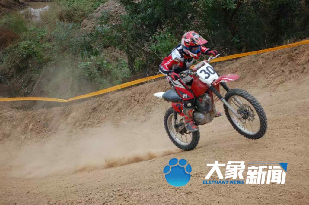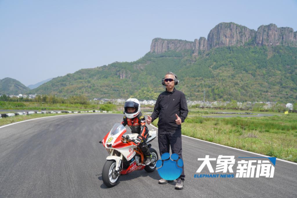 采访那天," 蛋哥 " 穿上专业装备做了现场表演,因为赛道没有提前清扫沙尘,蛋哥不慎中途翻车。小家伙一声没吭,更没掉一滴泪。